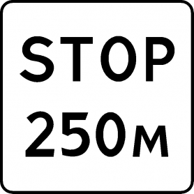 Табличка указывает расстояние от знака 2.4 до перекрестка в случае, если непосредственно перед перекрестком установлен знак 2.5.