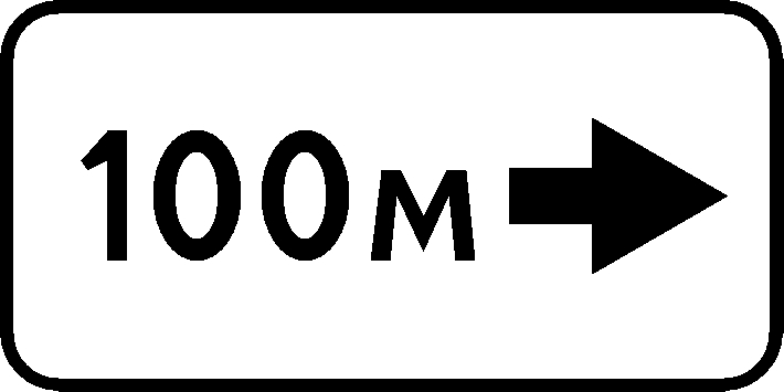 Табличка указывает расстояние до объекта, находящегося справа в стороне от дороги.