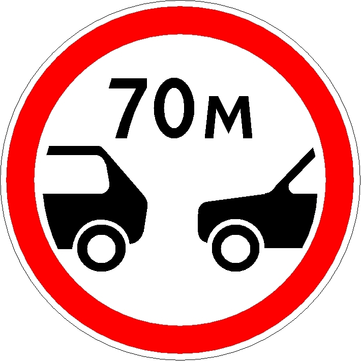 Запрещается движение транспортных средств с дистанцией между ними меньше указанной на знаке.