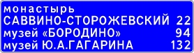 Расстояние (км) до населенных пунктов, расположенных на маршруте.